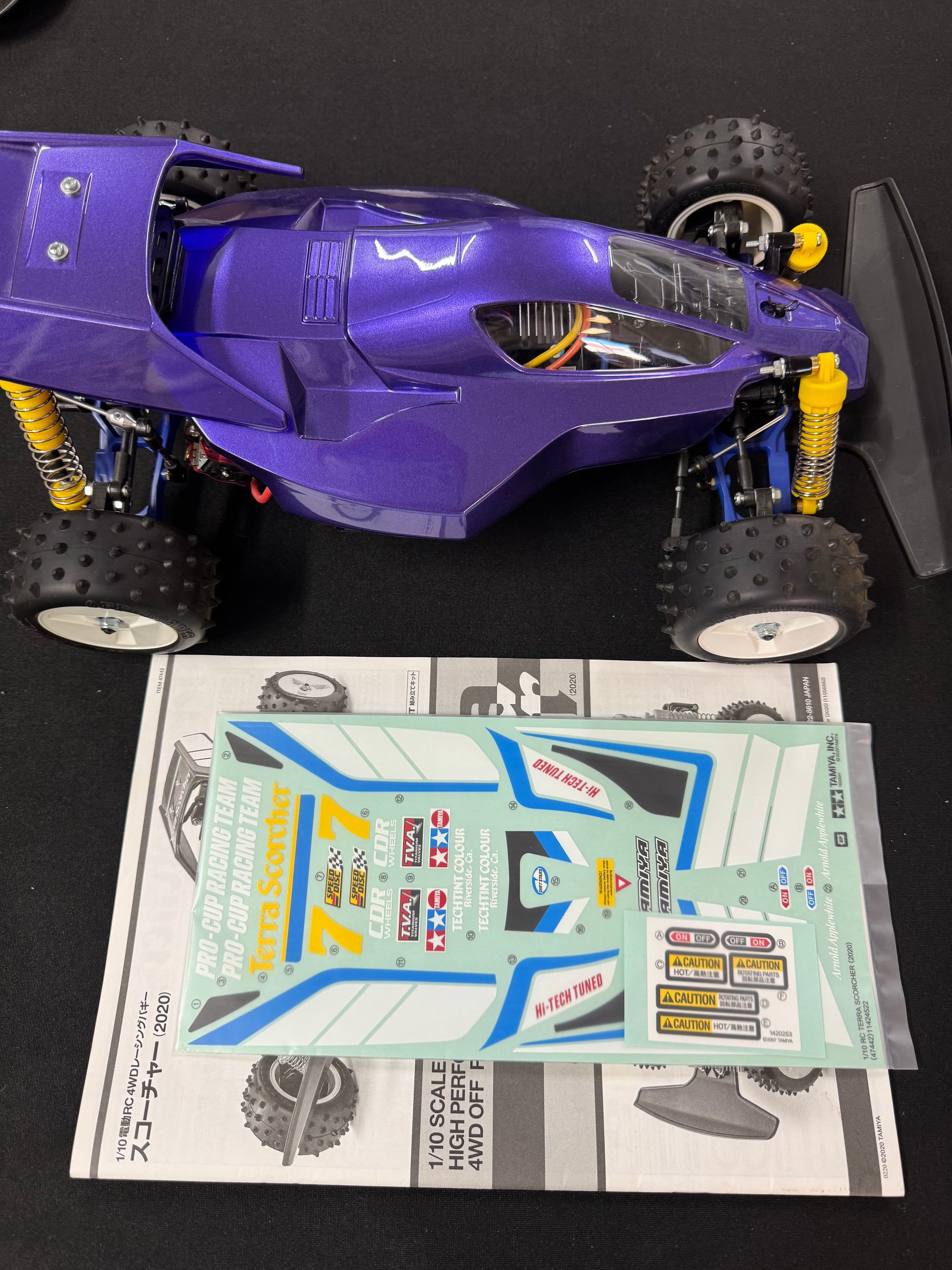 Up for grabs is a near-mint Tamiya Terra Scorcher that’s only been run once on indoor carpet. This buggy has been treated like a true shelf queen from day one — no scratches, no abuse, and no outdoor running.